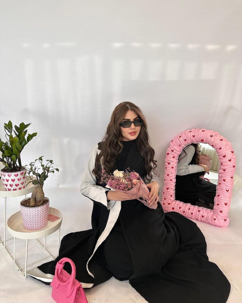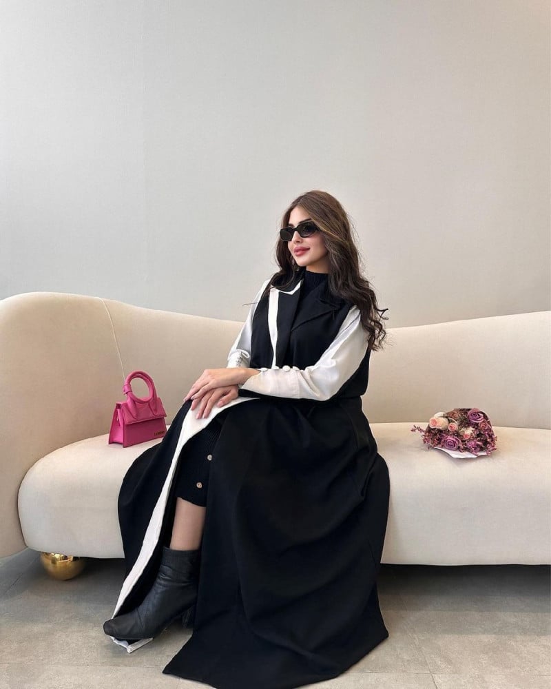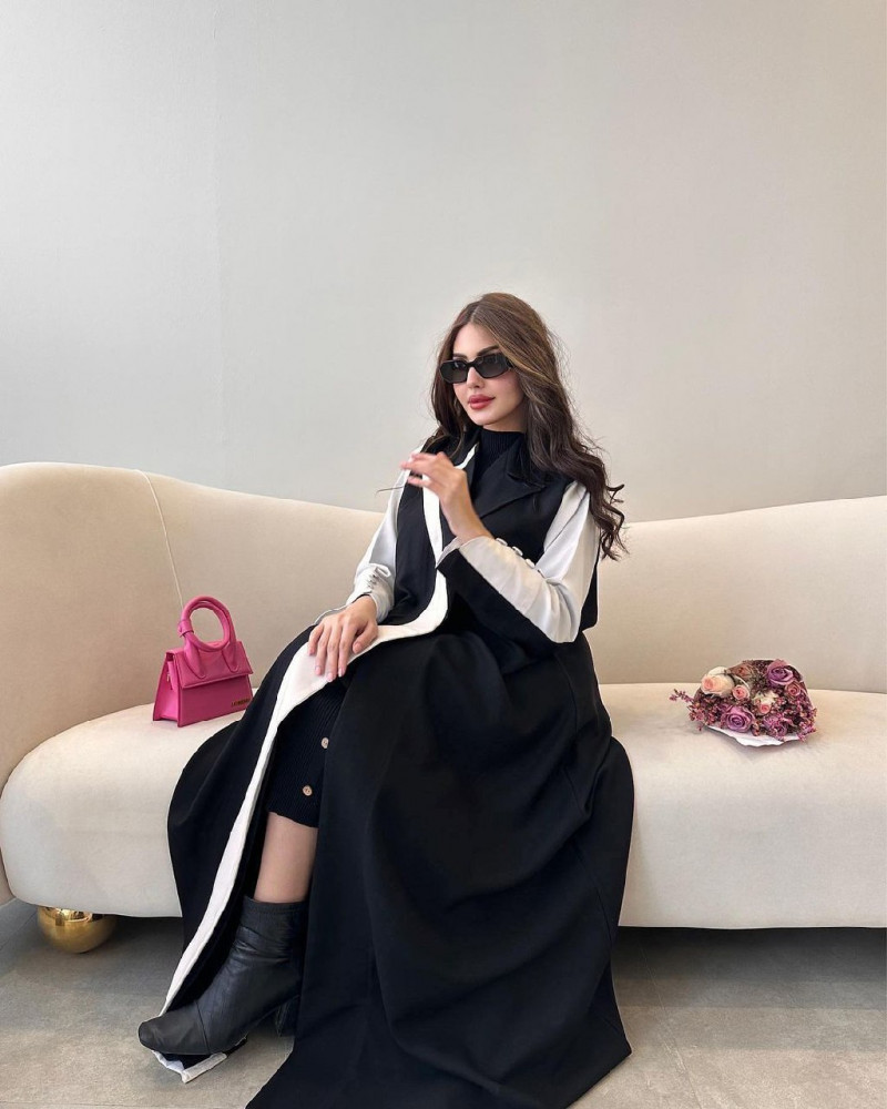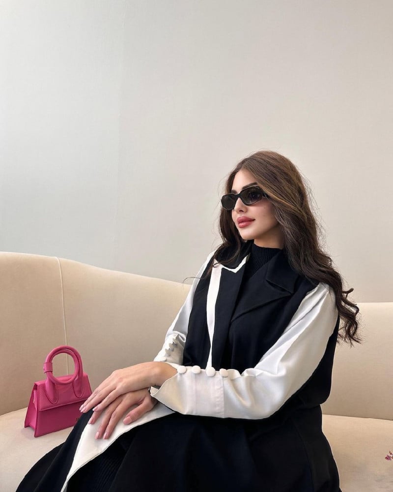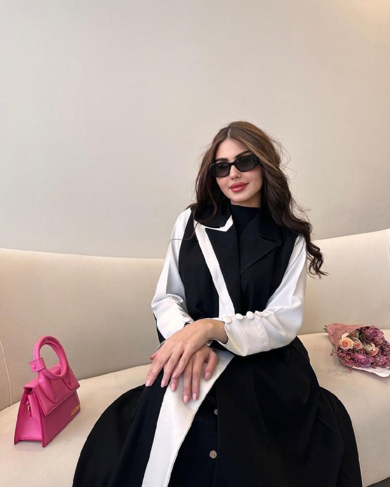 التفاصيل قماش اسود كتان تحديد ابيض +كم ابيض قصة جاكيت