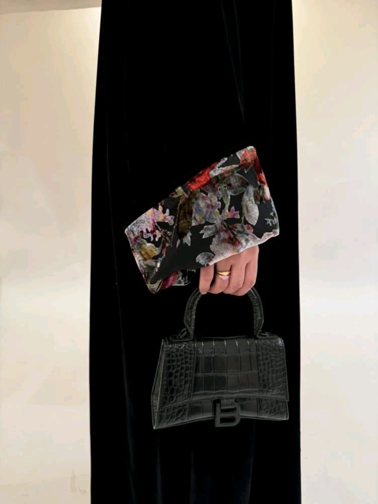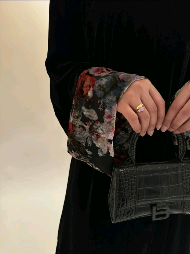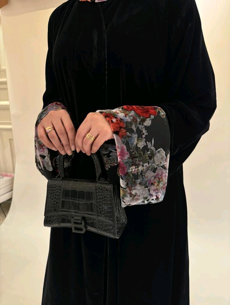 نوع القماش: مخمل اسود + الاكمام شيفون مخمل